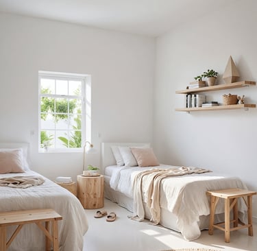 Ambiente sereno com texturas naturais.